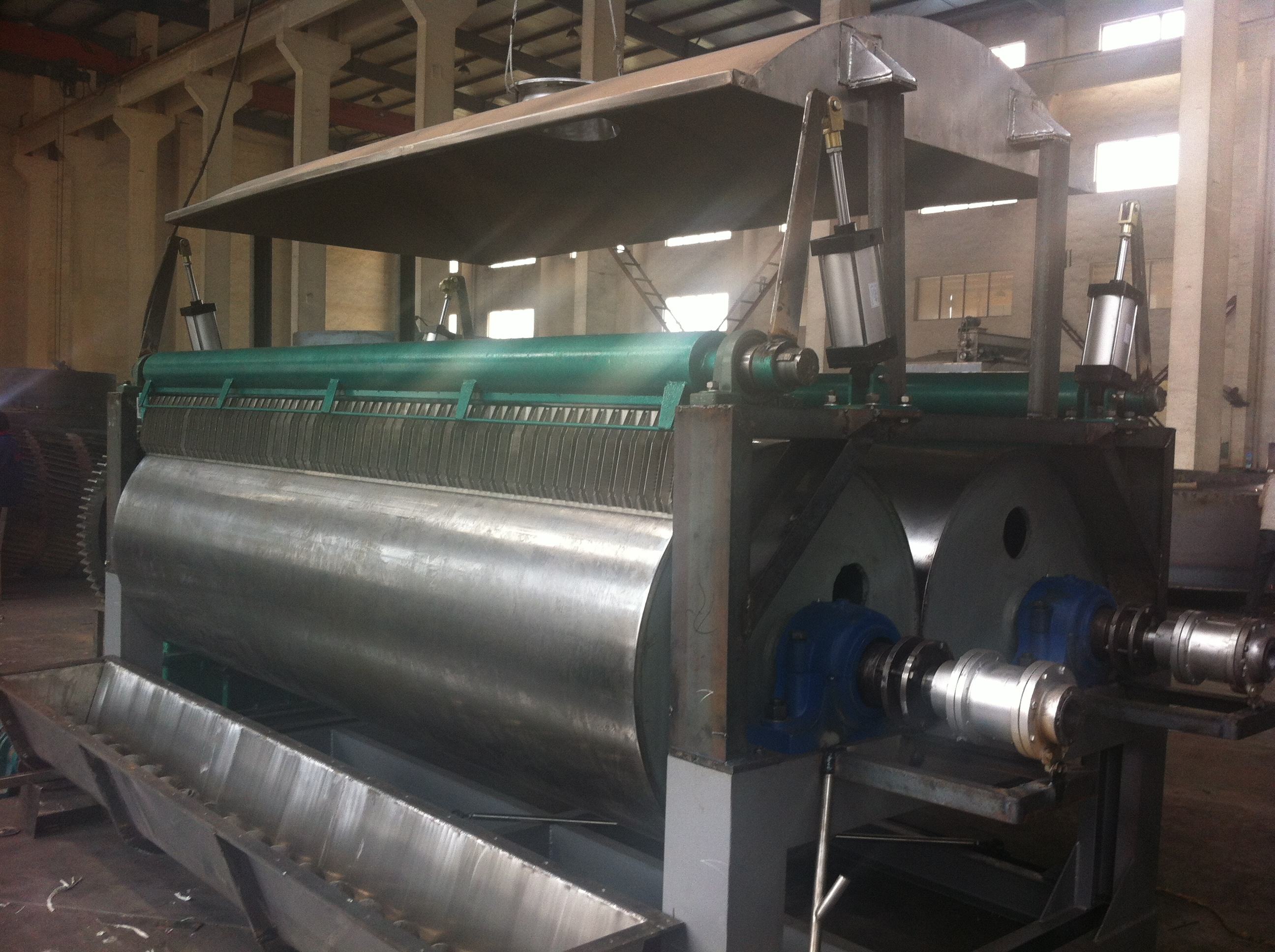 為了避免這些干燥設(shè)備缺陷的影響,可以通過(guò)加翅片換熱器、溶劑回收冷凝器、袋式過(guò)濾器、干料返混機(jī)構(gòu)、引風(fēng)機(jī)等輔機(jī),可提高干燥機(jī)的生產(chǎn)能力。干燥膏糊狀和熱敏性物料,每塊盤(pán)或每組盤(pán)能各自加熱或冷卻。